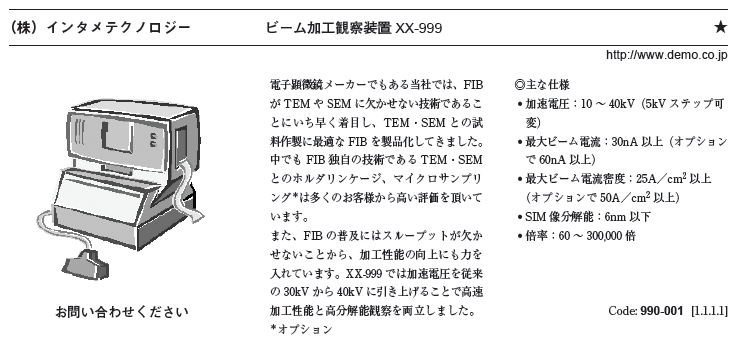 カタログに掲載する計測機器の製品データをXML化し、XSL-FOによる自動組版を実現する為には、標準化に向け多くの課題を解決して、製品単位の掲載枠(小組)のデザインパターンを統一しました。