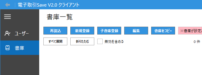 書庫一覧の画面の「新規登録」ボタンから取引データを保存する書庫を作成します。