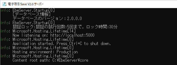 手動で起動した場合は起動時に表示されたログウインドウにて Ctrl+C を入力するか、ログウインドウを閉じてください。