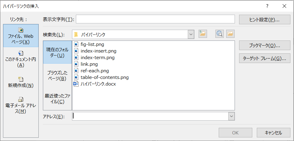 Wordで対話的にハイパーリンクを設定する機能には次の2つがあります。