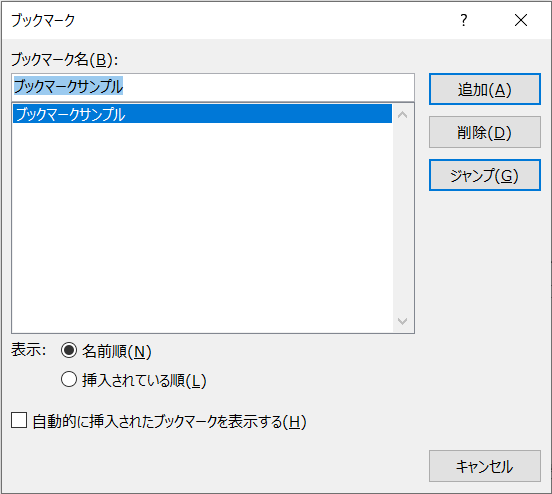 ブックマークは文書内部の特定位置に設定する名前付き識別子です。Wordにはダイアログで対話的にブックマークを追加・削除する機能と、ブックマークを自動で作成する機能があります。