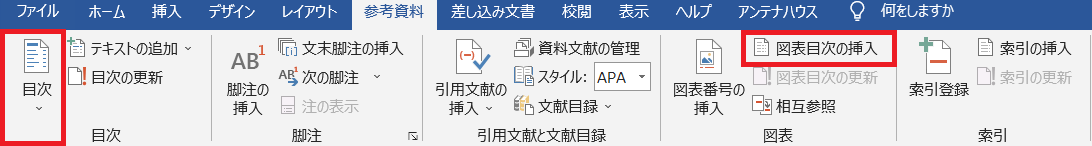 Wordで自動的にハイパーリンクを作成する機能としては、リボン「参考資料」の目次の自動作成と図表目次の組み込みがあります。