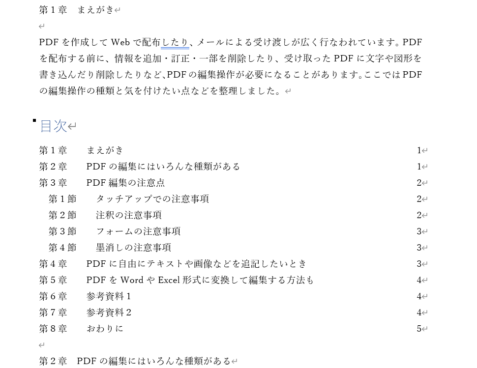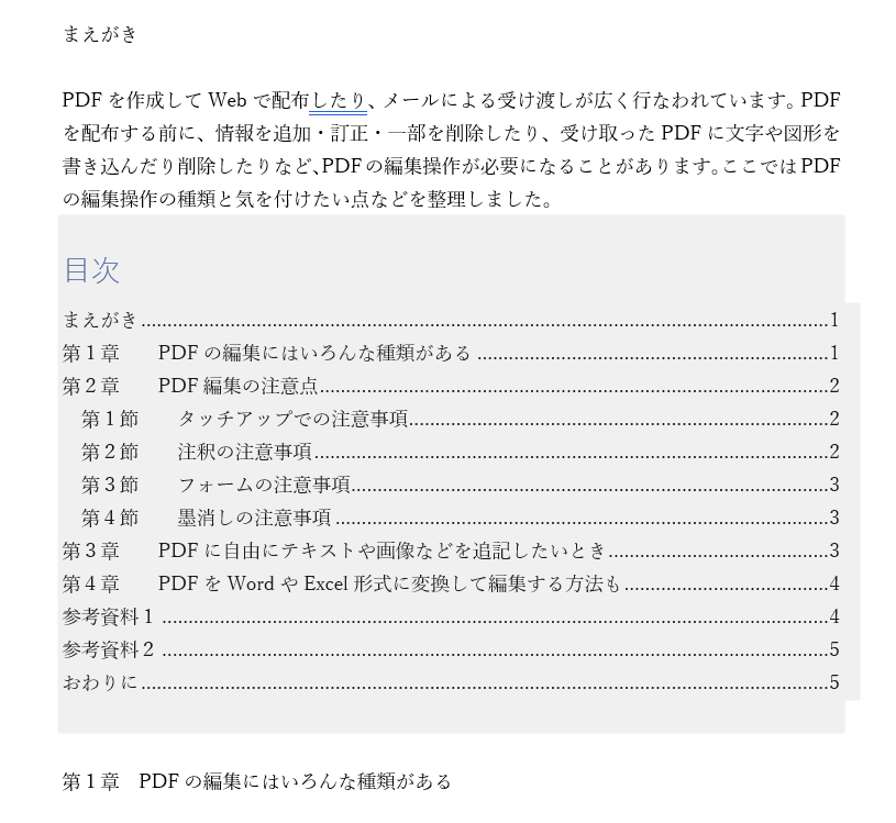 ちょっと高度な目次作成