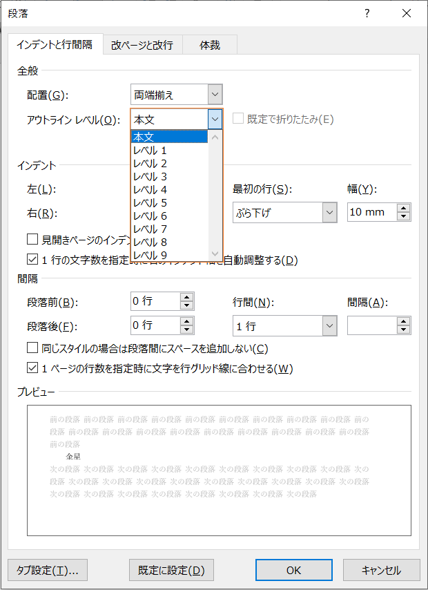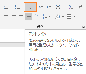 段落のアウトラインレベル