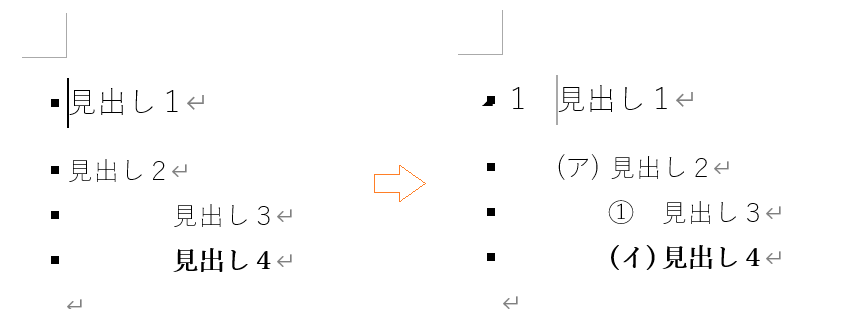 見出しのアウトライン番号を変更する