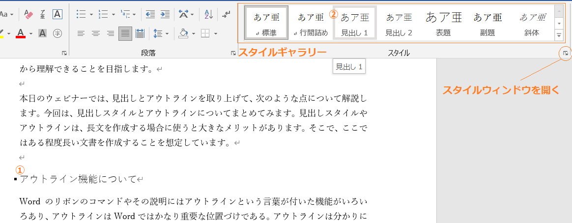 アウトラインと見出しスタイルの関係