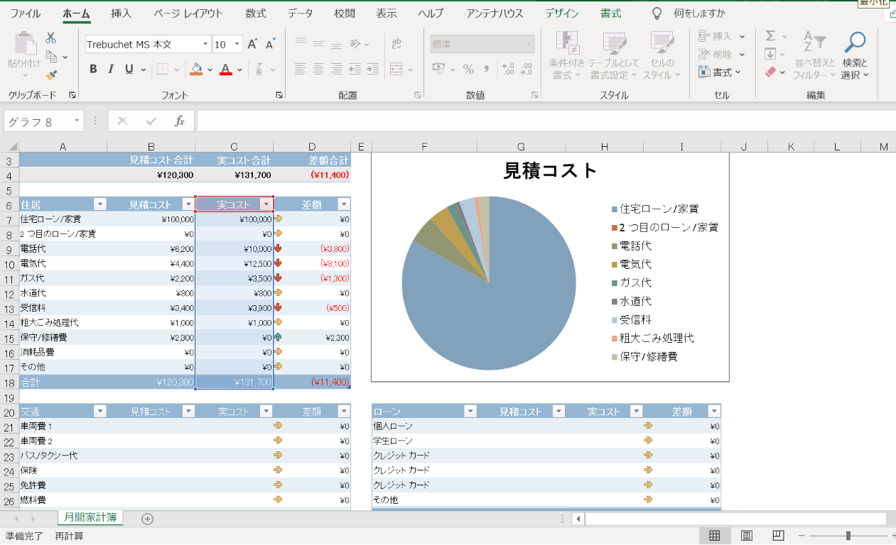 <c:f>月間家計簿!$B$6</c:f>