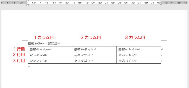 しかし、表としての行・列構造は横書きです。つまり、表の行が上から下に進み、表のカラムは左から右に進んでいます。