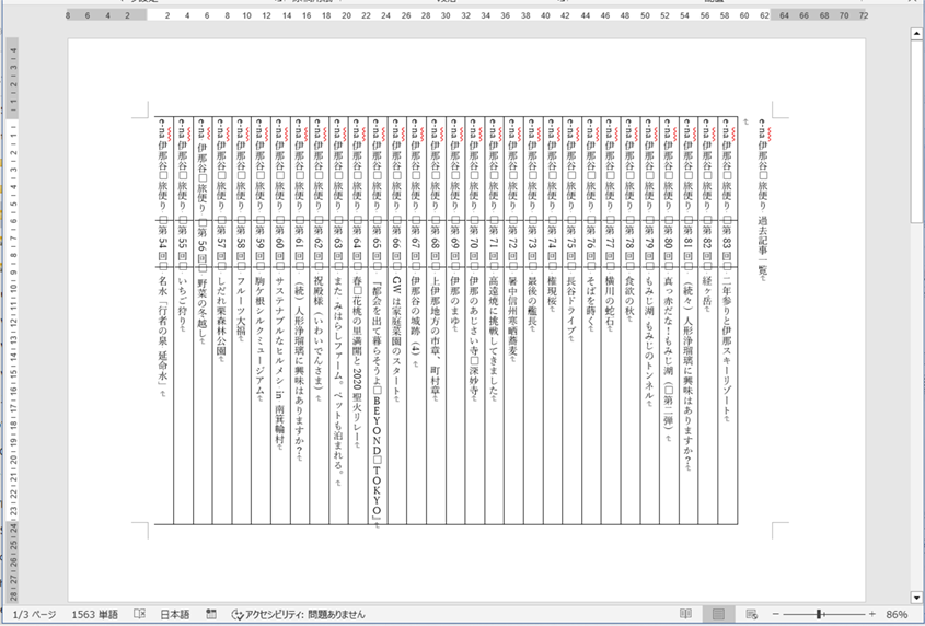 欠点としては、Wordのページ設定自体は横書きのため編集画面では文字が回転してしまっているので、編集しにくい点があげられます。
