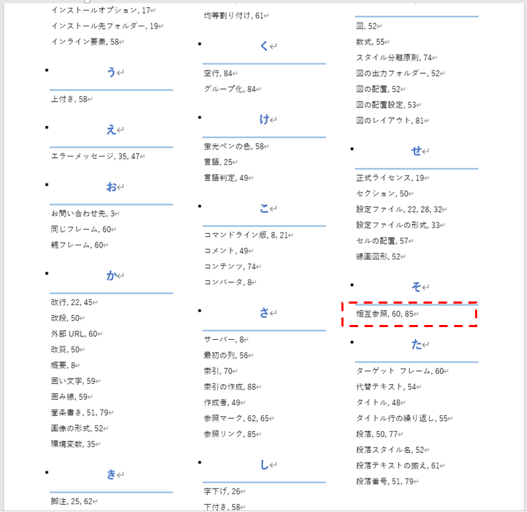 次の図はWordで作成した索引ページの例です。