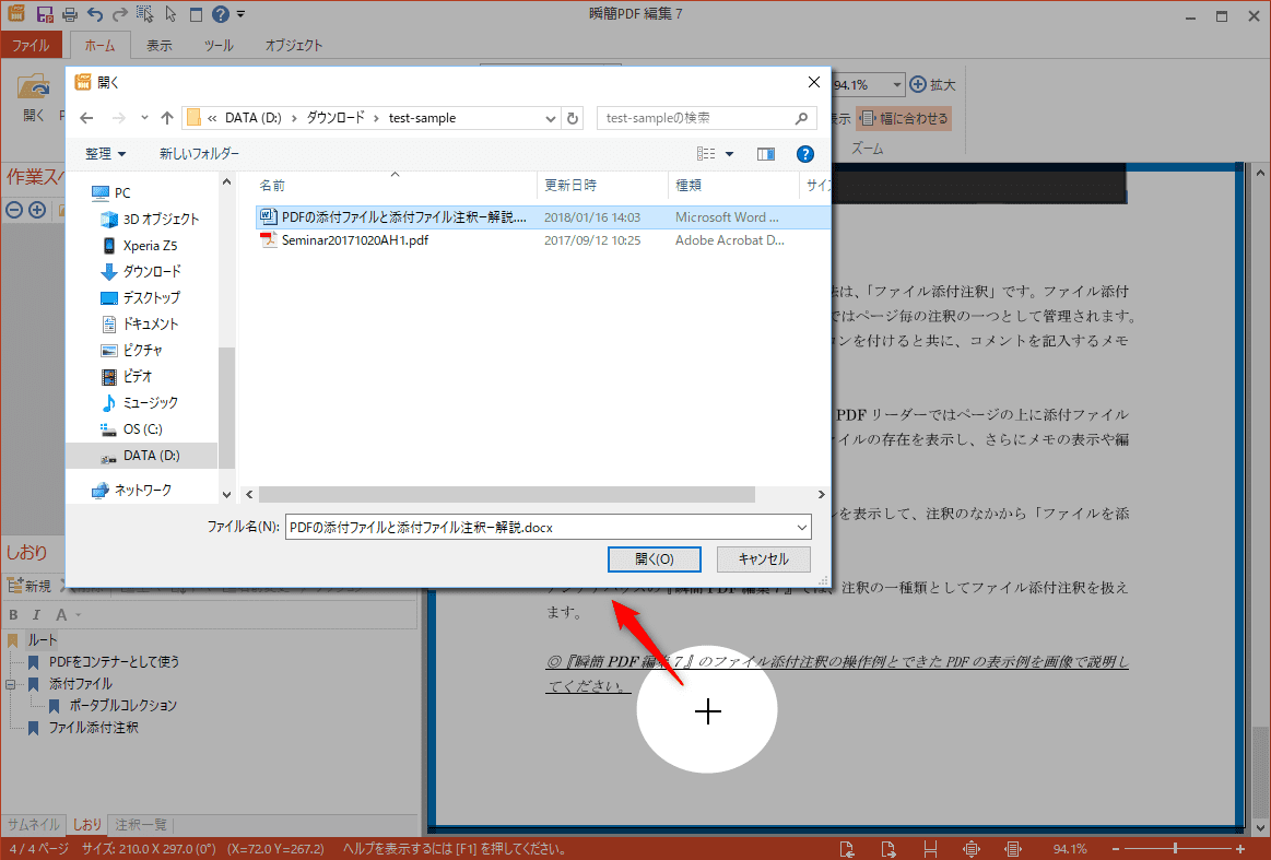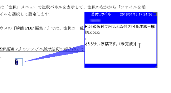 次に『瞬簡PDF 編集』を使ったファイル添付注釈について、操作法を簡単にご案内します。