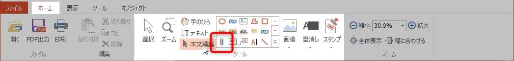 - メイン操作画面の「ホーム」リボンから、「ツール」カテゴリ内のクリップ(赤枠)をクリックします。