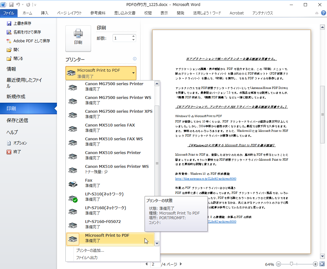 (参考)Windows 10 の PDF 作成機能
