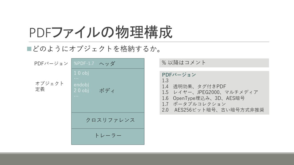次に、PDFファイルの構造についてご紹介します。