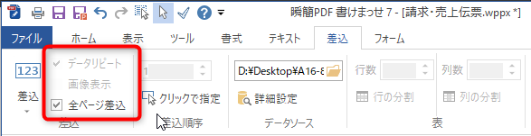 ![リボン[差込]タブの[データソース]フォルダアイコンをクリックし、差込データを指定](img/pdf-insertion/screenshot_03.png)