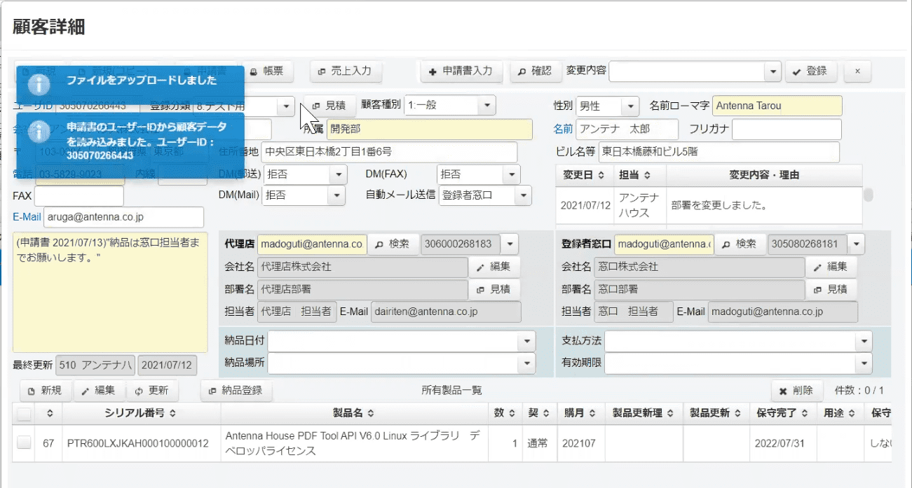 これとは別に、既存ユーザー様はマイページv)でWebページから登録内容を変更できます。しかし、弊社のシステム製品の場合、代理店様を経由しての受注が主体のため、エンドユーザー様がご自身で登録更新するケースは少ないという事情もあります。