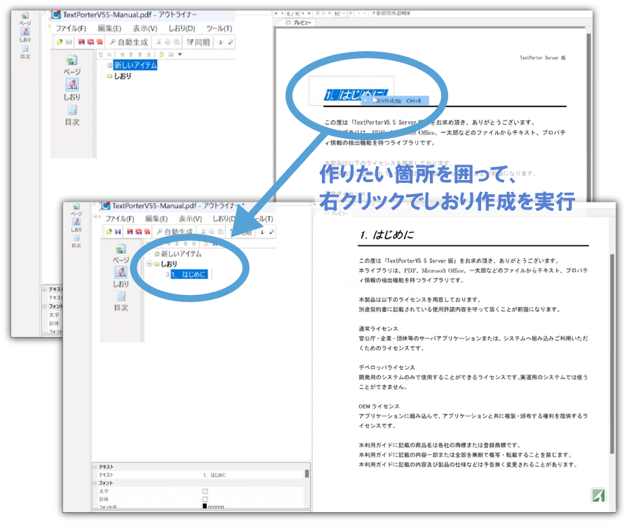 このように、目次情報からしおりを作成することで、便利なしおりを簡単かつ正確に作っていくことができます。