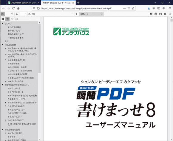 次の図は同じPDFファイルをFireFox内蔵のPDFリーダーで表示した状態です。
