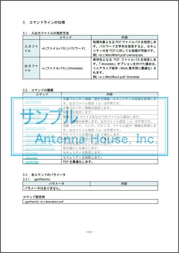 2.の逆です。弊社のお問い合わせ窓口にもこうした質問をいただくことがあります。こういう透かしの用途は、画面キャプチャを防止する目的でしょうか? 『瞬簡PDF 編集』、『瞬簡PDF 作成』、『PDF Tool API』[3]でできます。