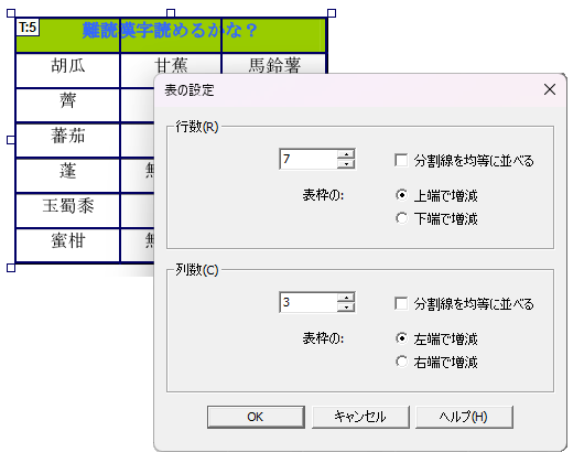 「表枠」作成機能の向上