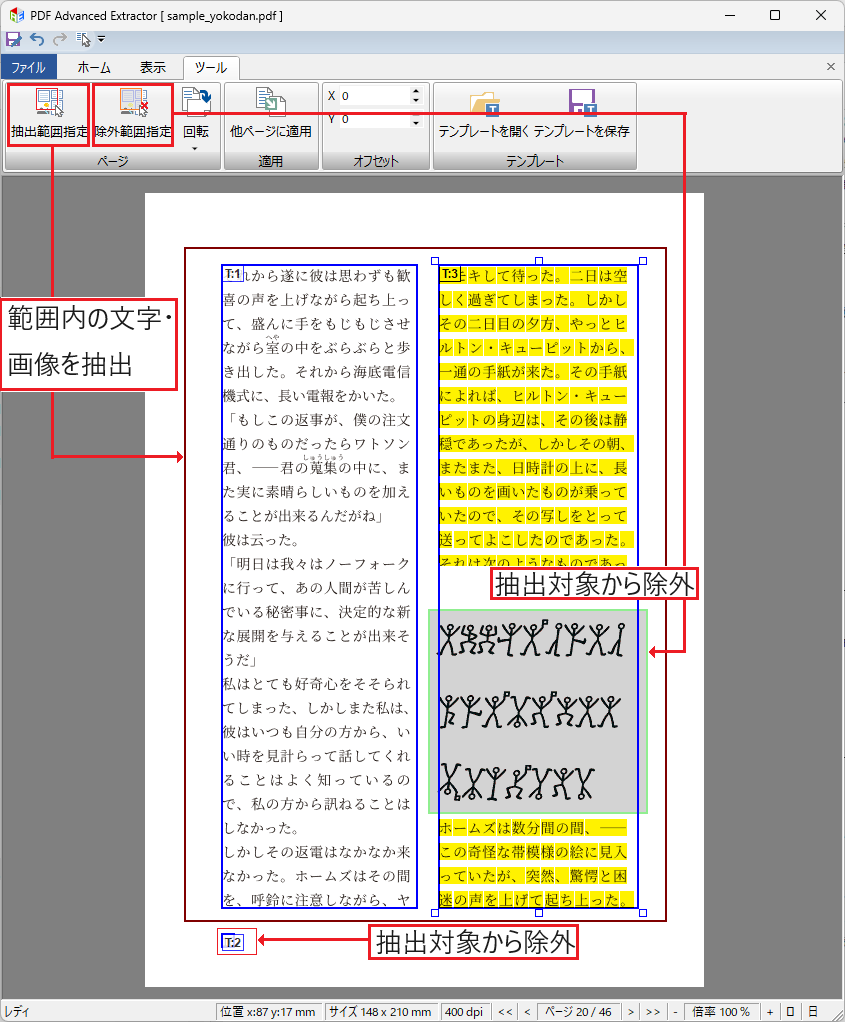 テキスト抽出を簡単にする便利な機能を多数搭載しています。