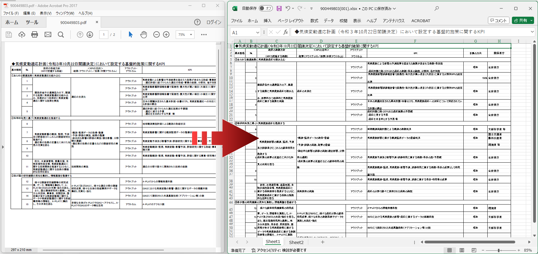 Excelへの変換例