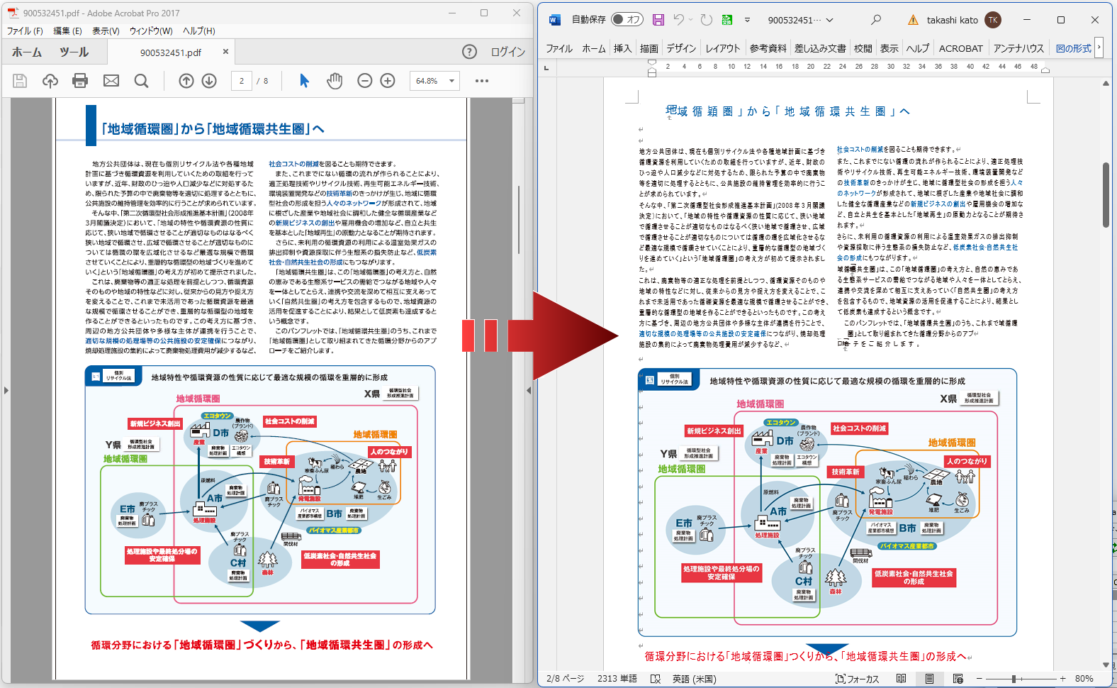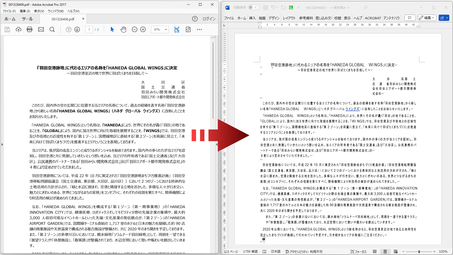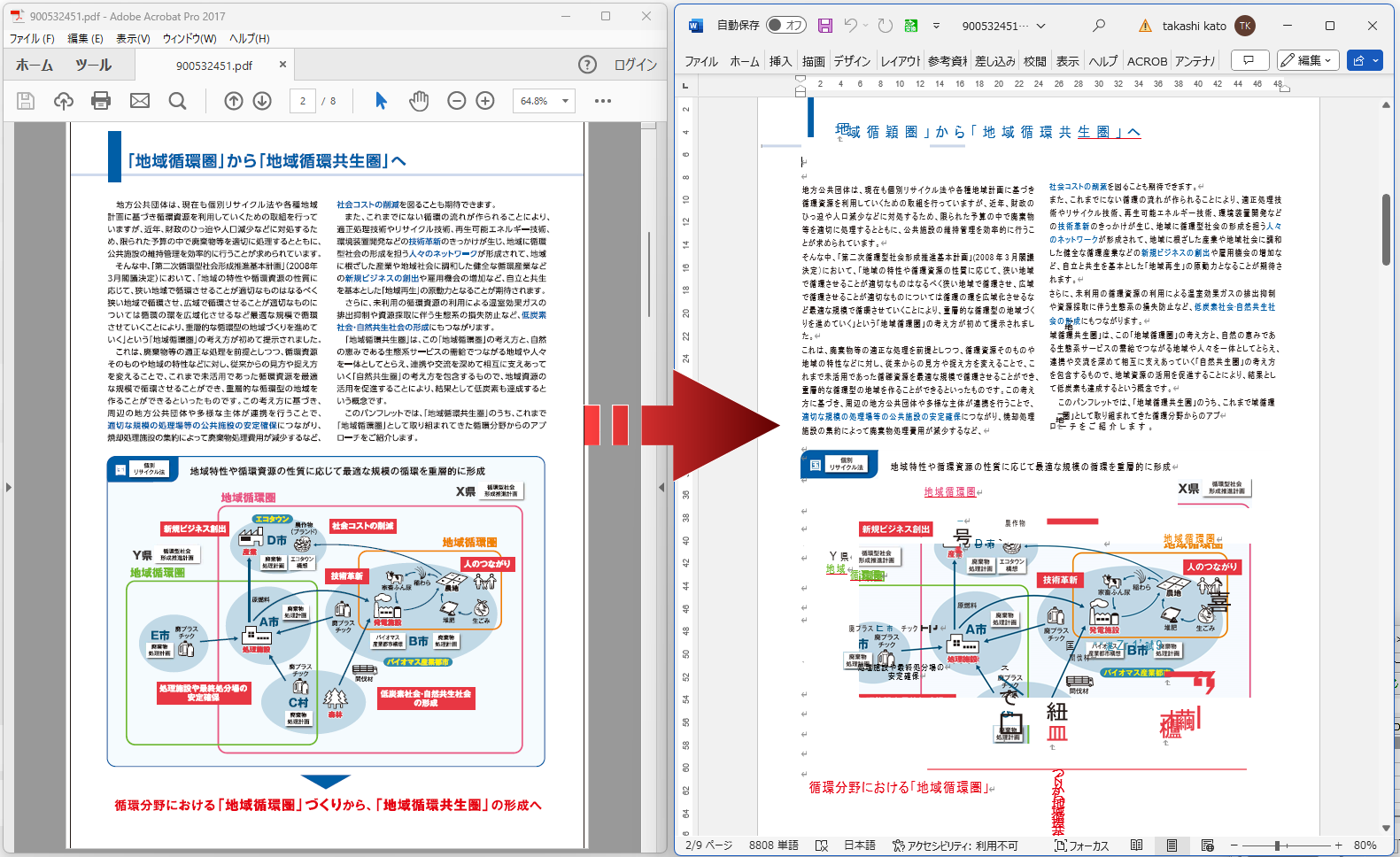 補正後は、「OCR結果の補正」機能の操作画面から任意の変換先を指定して変換を実行できます。以下に補正後の変換結果を示します。
