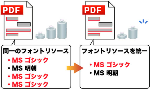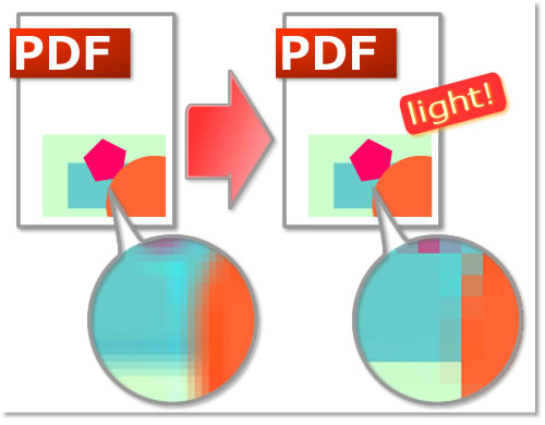 PDFページ上の画像に対しダウンサンプリングやJPEG圧縮設定をすることで軽量化ができます