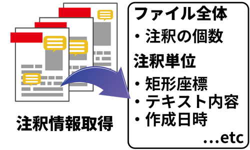 PDFファイルが持つさまざまな情報、コンテンツを取得・抽出します。編集機能と組み合わせることで、PDFの活用用途が広がります。