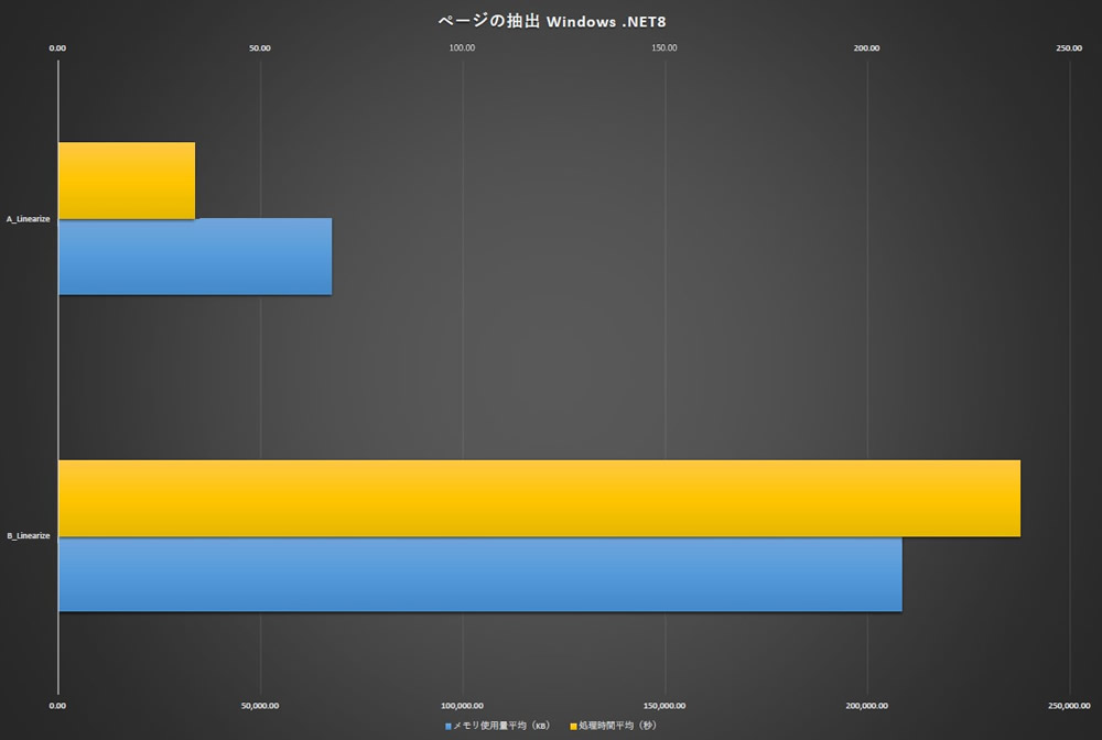 今回の測定ではページ指定ができる測定でも全ページを対象とした操作で測定しています。