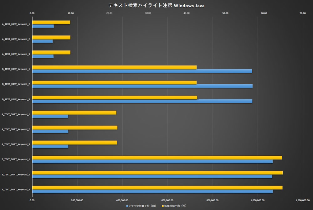 | メモリ使用量平均(KB) | 処理時間平均(秒) | |