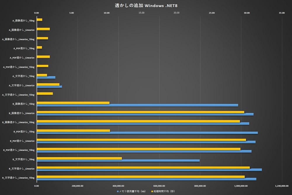操作するページ数の指定やそのページ内のオブジェクト数によってメモリ使用量や処理時間は変わってきます。