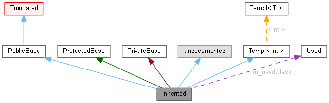青い矢印は二つのクラス間の公開継承関係を示します。