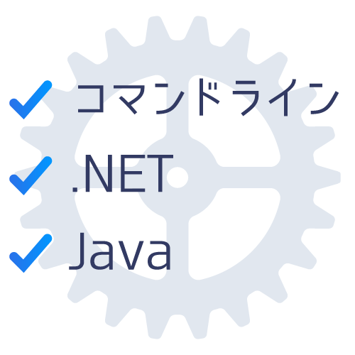 組込みインターフェイスとして、 コマンドラインインターフェイス、.NETインターフェイス、Javaインターフェイス を用意しています。