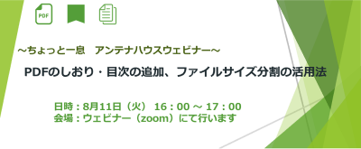 開催終了したウェビナーについては、参考資料・動画、その他参考ページへのリンクを随時追加していきます。ウェビナーが終了しても、新情報が追加されていることがありますので、ぜひ定期的にご確認ください。動画をまとめて確認する場合は、アンテナハウスPDFチャンネルをご覧ください!