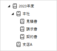 例えば2023年度といった"年度"を親書庫として、その子書庫へ"本社や支店"、更にその下に"部署"や"証憑"を階層構造に作成します。