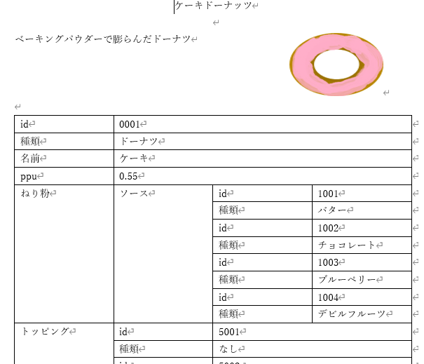 Word APIサンプル使用例:ネスト構造のテーブルへの差し込み印刷