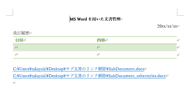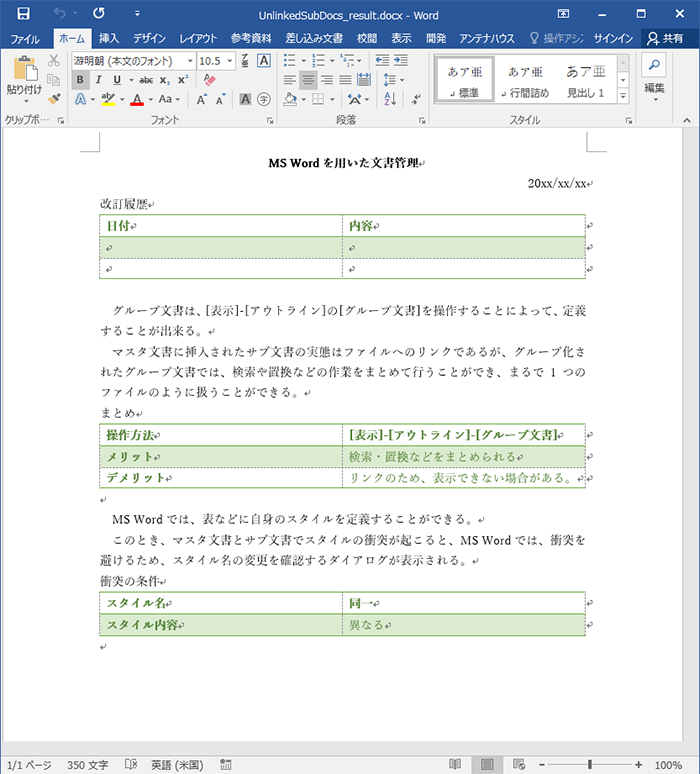 MasterDocumentというマスタ文書は、2つのWordファイルをサブ文書として保持しています。『Word API』を使用すると、マスタ文書からサブ文書のリンクを解除し、グループ文書を解除することができます。