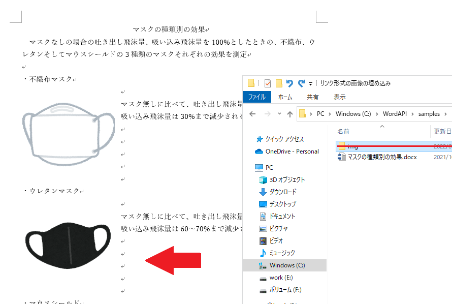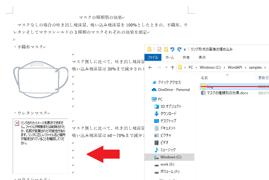 - マスクの種類別の効果.docx:画像をリンクで参照しているWord文書