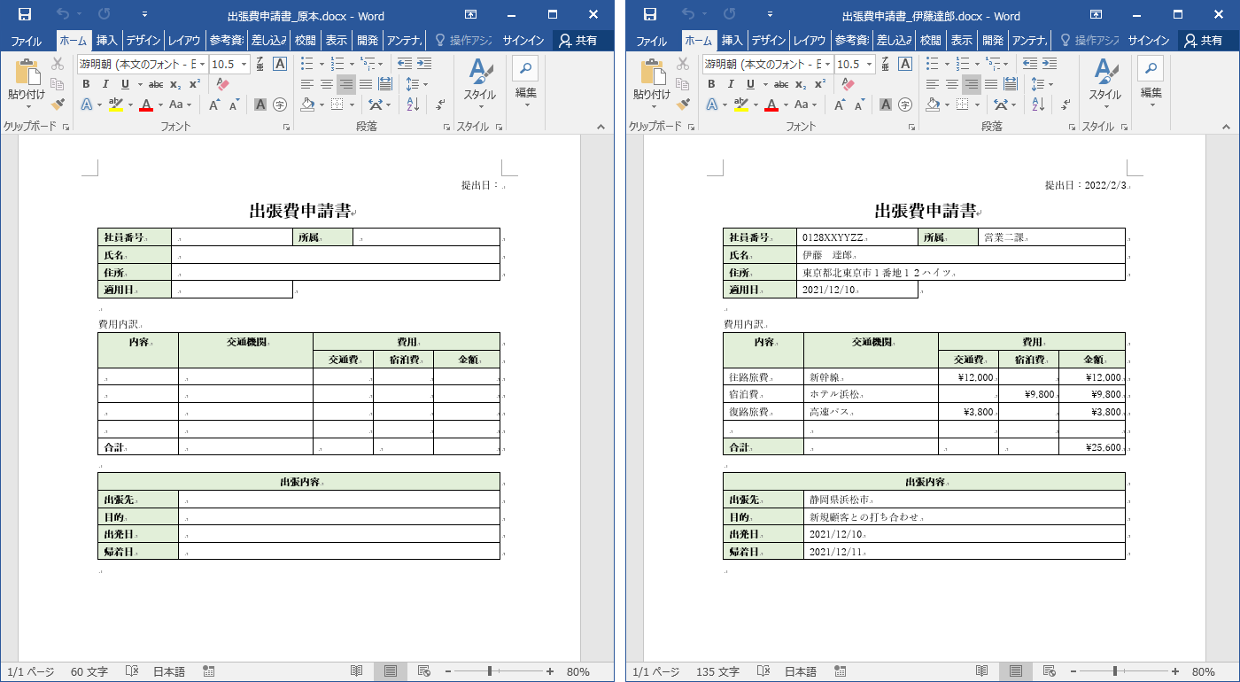 - 内容(Table2) : 往路旅費, 宿泊費, 復路旅費, 合計